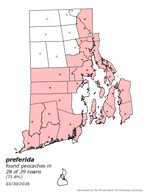 | Top Finders of Rhode Island Geocaches | Plots all your finds across Rhode Island and lists where you rank among other top RI cachers. |