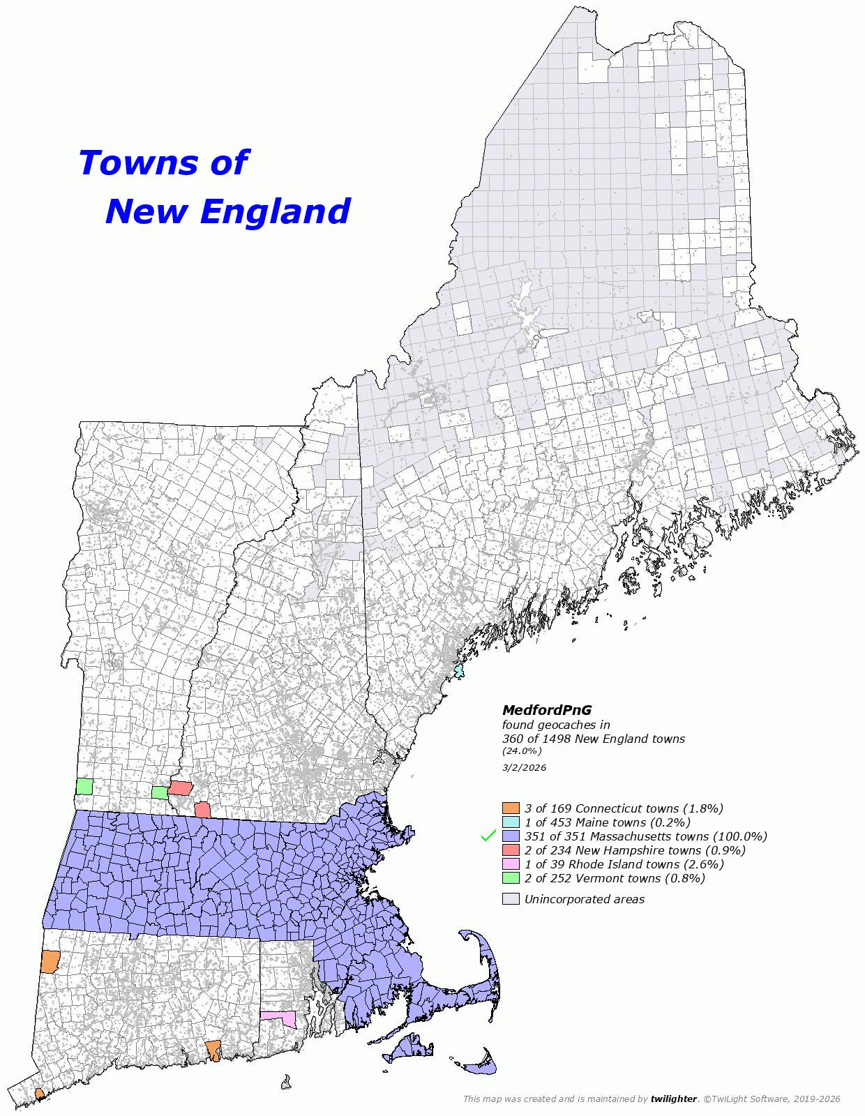 | Massachusetts 351 Challenge Calculator | Shows all the Massachusetts towns where you've found caches -- a helpful tool for completing the Massachusetts 351 Challenge (GC48CR5). |
