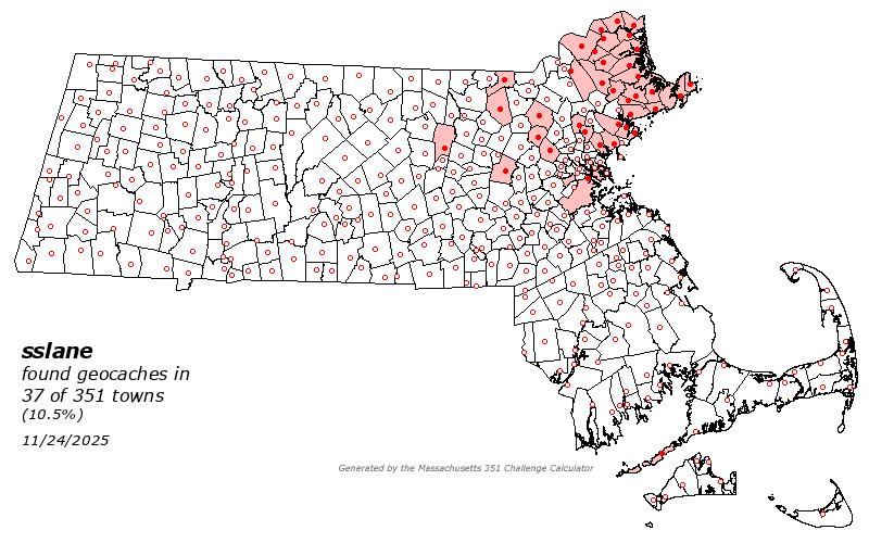 | Top Finders of Massachusetts Geocaches | Plots all your finds across Massachusetts and lists where you rank among other top MA cachers. |