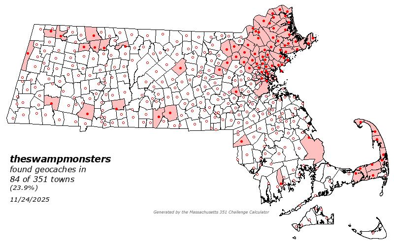 As of November 24 2025, there are 16500 active caches placed around Massachusetts.