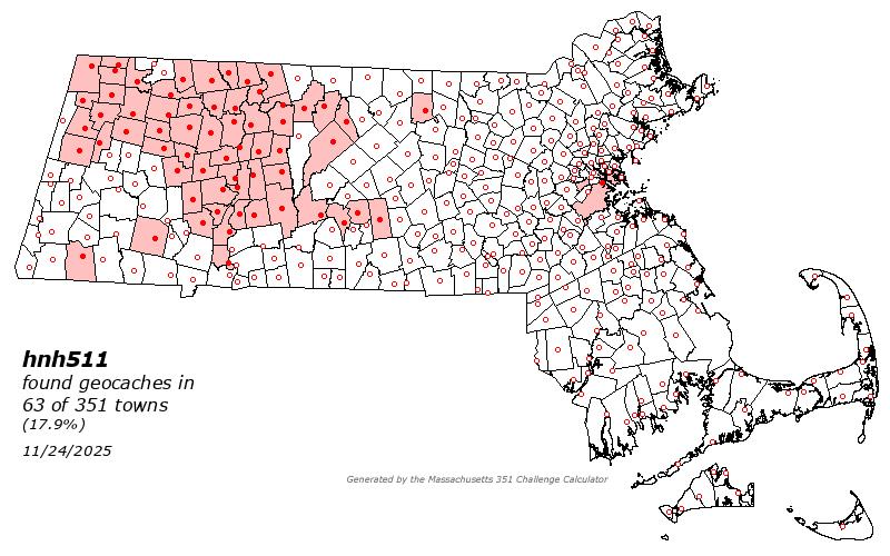 As of November 24 2025, there are 16500 active caches placed around Massachusetts.