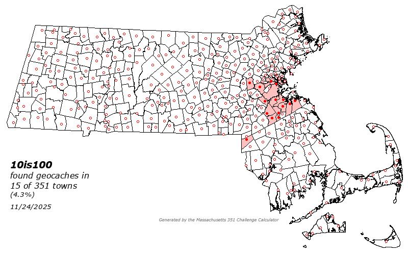 | Top Finders of Massachusetts Geocaches | Plots all your finds across Massachusetts and lists where you rank among other top MA cachers. |