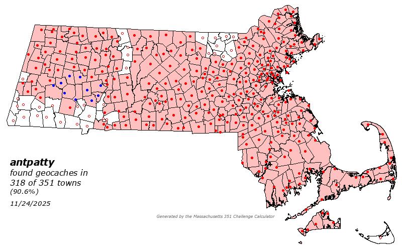 As of November 24 2025, there are 16500 active caches placed around Massachusetts.