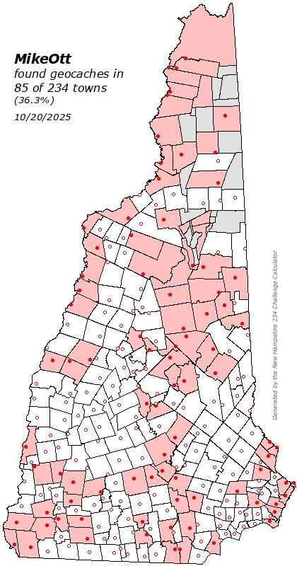 As of October 20 2025, there are 12110 active caches placed around New Hampshire.