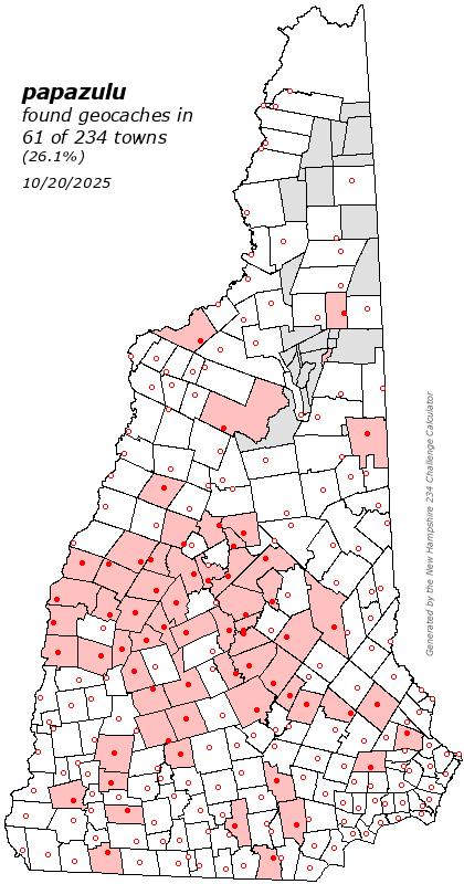 Top Finders of New Hampshire Geocaches | Plots all your finds across New Hampshire and lists where you rank among other top NH cachers. |