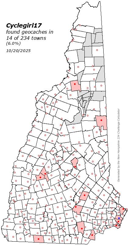 As of October 20 2025, there are 12110 active caches placed around New Hampshire.