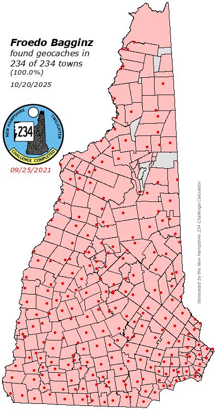 Town Challenges -- Wall of Fame | A list of cachers who have completed both the New Hampshire 234 and the Massachusetts 351, and those that have also completed the Rhode Island 39+1 or the Vermont 251+4. |