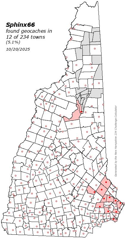 Top Finders of New Hampshire Geocaches | Plots all your finds across New Hampshire and lists where you rank among other top NH cachers. |