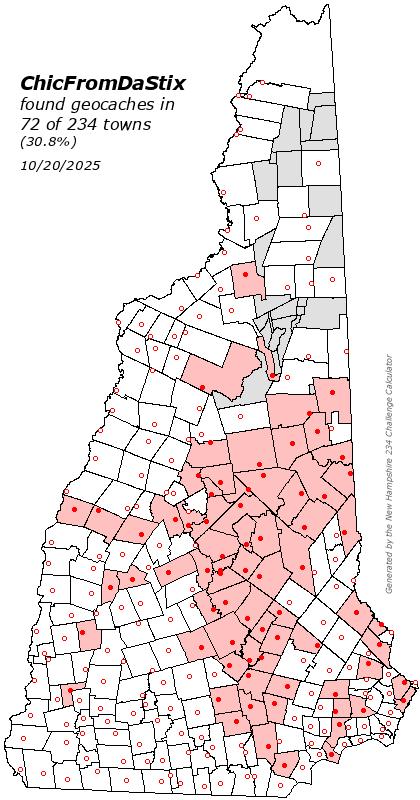 Top Finders of New Hampshire Geocaches | Plots all your finds across New Hampshire and lists where you rank among other top NH cachers. |