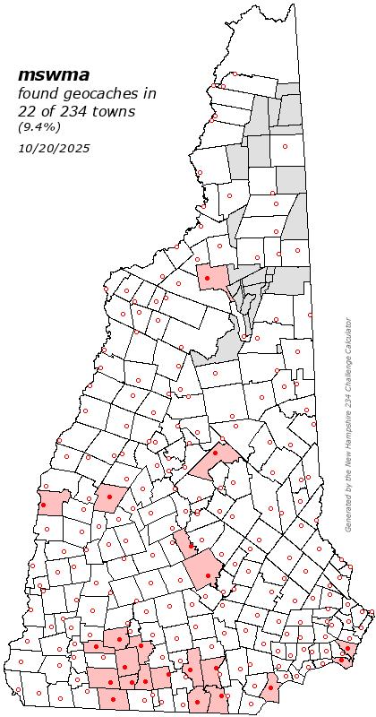 As of October 20 2025, there are 12110 active caches placed around New Hampshire.