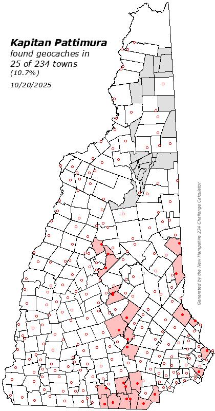 Top Finders of New Hampshire Geocaches | Plots all your finds across New Hampshire and lists where you rank among other top NH cachers. |
