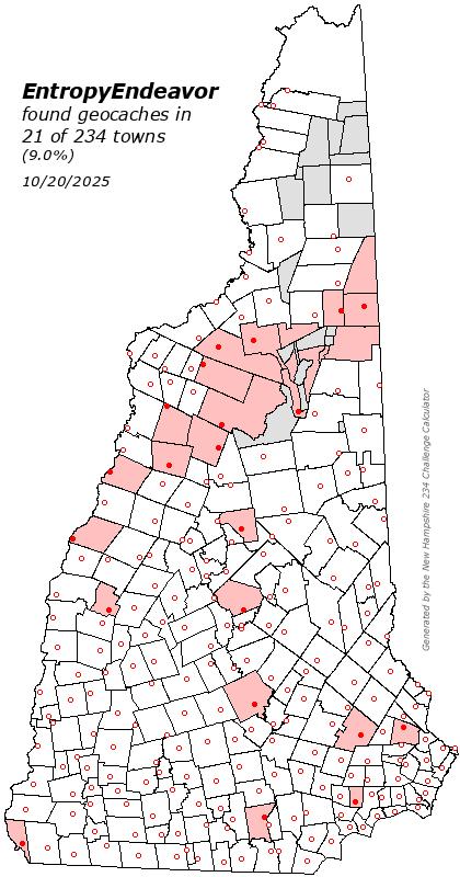 As of October 20 2025, there are 12110 active caches placed around New Hampshire.