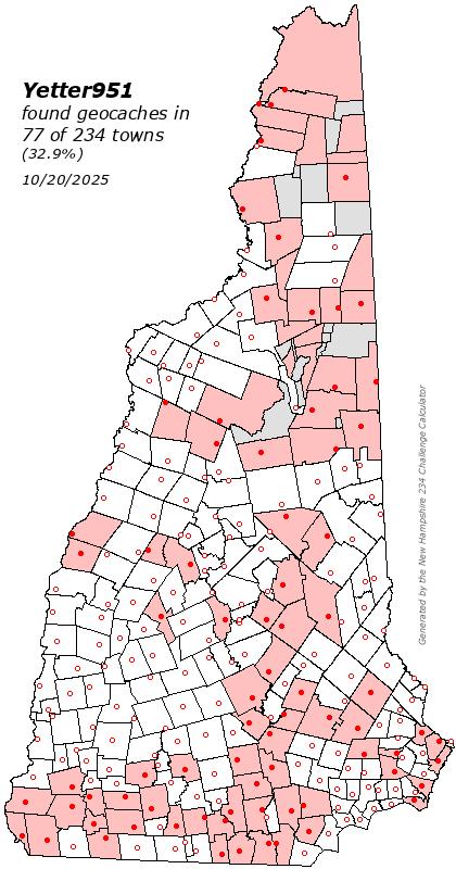 Top Finders of New Hampshire Geocaches | Plots all your finds across New Hampshire and lists where you rank among other top NH cachers. |