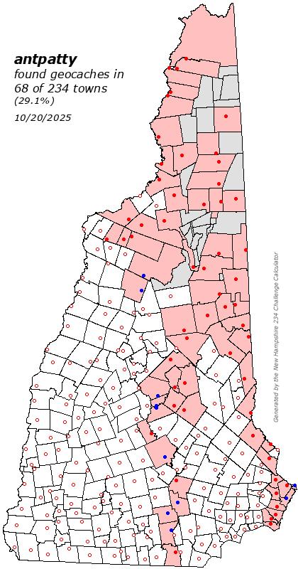 Top Finders of New Hampshire Geocaches | Plots all your finds across New Hampshire and lists where you rank among other top NH cachers. |