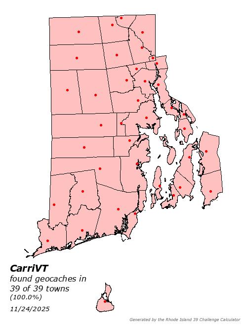 | Top Finders of Rhode Island Geocaches | Plots all your finds across Rhode Island and lists where you rank among other top RI cachers. |