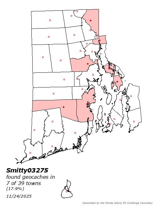 | Top Finders of Rhode Island Geocaches | Plots all your finds across Rhode Island and lists where you rank among other top RI cachers. |