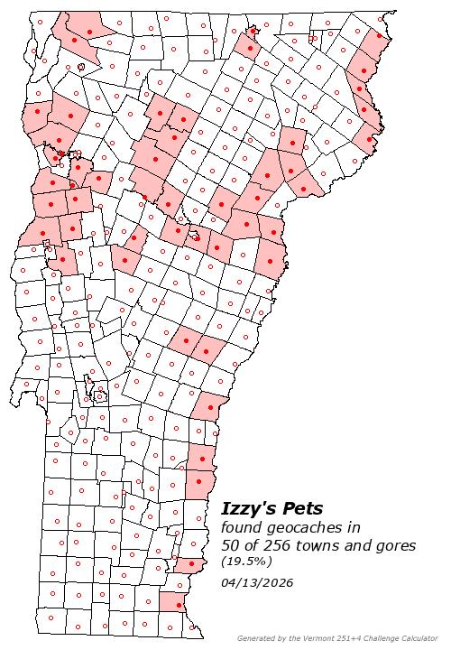 | Top Finders of Vermont Geocaches | Plots all your finds across Vermont and lists where you rank among other top VT cachers. |