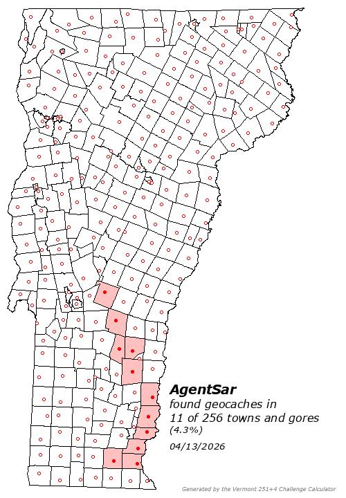 | Top Finders of Vermont Geocaches | Plots all your finds across Vermont and lists where you rank among other top VT cachers. |